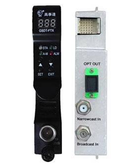 GSDT-FTX光發(fā)射機模塊是專門為現(xiàn)在和將來之HFC及FTTH應用而設計的1310nm直調(diào)光發(fā)射機。發(fā)射機使用高性能制冷型1310nm DFB光源,采用先進的預失真電路,使系統(tǒng)具有良好的CTB和CSO特性,其嵌入式單片機處理電路監(jiān)測和控制所有的參數(shù)狀態(tài)及遠程通信,可以通過訪問前面板之LED或EMS設備管理模塊來獲取這些參數(shù)信息。